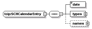 | source | <xs:complexType name="SCHCalendarEntry"> <xs:sequence> <xs:element name="date" type="CPT-Date"/> <xs:element name="types"> <xs:complexType> <xs:sequence maxOccurs="20"> <xs:element name="type" type="SCH-DayType"/> </xs:sequence> </xs:complexType> </xs:element> <xs:element name="names" minOccurs="0"> <xs:complexType> <xs:sequence maxOccurs="20"> <xs:element name="name" type="SCH-DayTypeDescription"/> </xs:sequence> </xs:complexType> </xs:element> </xs:sequence> </xs:complexType> |