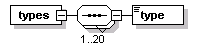 | source | <xs:element name="types"> <xs:complexType> <xs:sequence maxOccurs="20"> <xs:element name="type" type="SCH-DayType"/> </xs:sequence> </xs:complexType> </xs:element> |