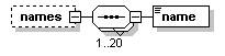 | source | <xs:element name="names" minOccurs="0"> <xs:complexType> <xs:sequence maxOccurs="20"> <xs:element name="name" type="SCH-DayTypeDescription"/> </xs:sequence> </xs:complexType> </xs:element> |