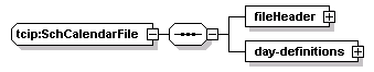 | source | <xs:complexType name="SchCalendarFile"> <xs:sequence> <xs:element name="fileHeader" type="CPTLoadFileHeader"/> <xs:element name="day-definitions"> <xs:complexType> <xs:sequence maxOccurs="400"> <xs:element name="day-definition" type="SCHCalendarEntry"/> </xs:sequence> </xs:complexType> </xs:element> </xs:sequence> </xs:complexType> |