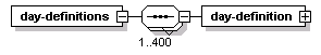 | source | <xs:element name="day-definitions"> <xs:complexType> <xs:sequence maxOccurs="400"> <xs:element name="day-definition" type="SCHCalendarEntry"/> </xs:sequence> </xs:complexType> </xs:element> |