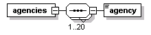 | source | <xs:element name="agencies"> <xs:complexType> <xs:sequence maxOccurs="20"> <xs:element name="agency" type="CPT-AgencyID"/> </xs:sequence> </xs:complexType> </xs:element> |