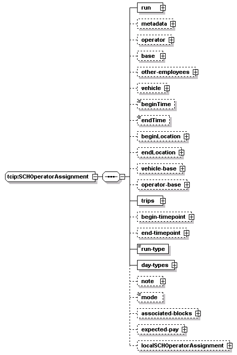 | children | run metadata operator base other-employees vehicle beginTime endTime beginLocation endLocation vehicle-base operator-base trips begin-timepoint end-timepoint run-type day-types note mode associated-blocks expected-pay localSCHOperatorAssignment | ||