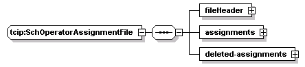 | source | <xs:complexType name="SchOperatorAssignmentFile"> <xs:sequence> <xs:element name="fileHeader" type="CPTLoadFileHeader"/> <xs:element name="assignments"> <xs:complexType> <xs:sequence maxOccurs="10000"> <xs:element name="assignment" type="SCHOperatorAssignment"/> </xs:sequence> </xs:complexType> </xs:element> <xs:element name="deleted-assignments"> <xs:complexType> <xs:sequence maxOccurs="10000"> <xs:element name="deleted-assignment" type="SCHRunIden"/> </xs:sequence> </xs:complexType> </xs:element> </xs:sequence> </xs:complexType> |