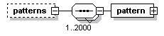 | source | <xs:element name="patterns" minOccurs="0"> <xs:complexType> <xs:sequence maxOccurs="2000"> <xs:element name="pattern" type="SCHPatternInfo"/> </xs:sequence> </xs:complexType> </xs:element> |