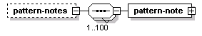 | source | <xs:element name="pattern-notes" minOccurs="0"> <xs:complexType> <xs:sequence maxOccurs="100"> <xs:element name="pattern-note" type="SCHNoteIden"/> </xs:sequence> </xs:complexType> </xs:element> |