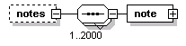 | source | <xs:element name="notes" minOccurs="0"> <xs:complexType> <xs:sequence maxOccurs="2000"> <xs:element name="note" type="SCHNoteInfo"/> </xs:sequence> </xs:complexType> </xs:element> |