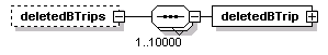 | source | <xs:element name="deletedBTrips" minOccurs="0"> <xs:complexType> <xs:sequence maxOccurs="10000"> <xs:element name="deletedBTrip" type="SCHTripIden"/> </xs:sequence> </xs:complexType> </xs:element> |