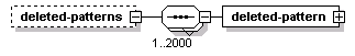 | source | <xs:element name="deleted-patterns" minOccurs="0"> <xs:complexType> <xs:sequence maxOccurs="2000"> <xs:element name="deleted-pattern" type="SCHPatternIden"/> </xs:sequence> </xs:complexType> </xs:element> |