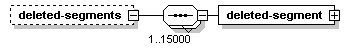 | source | <xs:element name="deleted-segments" minOccurs="0"> <xs:complexType> <xs:sequence maxOccurs="15000"> <xs:element name="deleted-segment" type="SCHPatternSegmentIden"/> </xs:sequence> </xs:complexType> </xs:element> |
