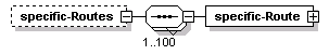 | source | <xs:element name="specific-Routes" minOccurs="0"> <xs:complexType> <xs:sequence maxOccurs="100"> <xs:element name="specific-Route" type="SCHRouteIden"/> </xs:sequence> </xs:complexType> </xs:element> |