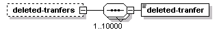 | source | <xs:element name="deleted-tranfers" minOccurs="0"> <xs:complexType> <xs:sequence maxOccurs="10000"> <xs:element name="deleted-tranfer" type="SCH-TransferID"/> </xs:sequence> </xs:complexType> </xs:element> |