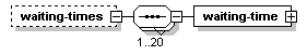 | source | <xs:element name="waiting-times" minOccurs="0"> <xs:complexType> <xs:sequence maxOccurs="20"> <xs:element name="waiting-time" type="SCHWaitingTime"/> </xs:sequence> </xs:complexType> </xs:element> |