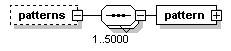 | source | <xs:element name="patterns" minOccurs="0"> <xs:complexType> <xs:sequence maxOccurs="5000"> <xs:element name="pattern" type="SCHPatternIden"/> </xs:sequence> </xs:complexType> </xs:element> |