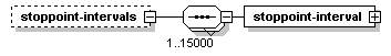 | source | <xs:element name="stoppoint-intervals" minOccurs="0"> <xs:complexType> <xs:sequence maxOccurs="15000"> <xs:element name="stoppoint-interval" type="SCHStoppointPair"/> </xs:sequence> </xs:complexType> </xs:element> |