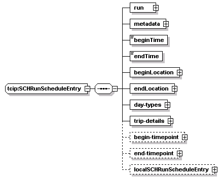 | children | run metadata beginTime endTime beginLocation endLocation day-types trip-details begin-timepoint end-timepoint localSCHRunScheduleEntry | ||