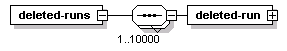 | source | <xs:element name="deleted-runs"> <xs:complexType> <xs:sequence maxOccurs="10000"> <xs:element name="deleted-run" type="SCHRunIden"/> </xs:sequence> </xs:complexType> </xs:element> |