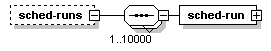 | source | <xs:element name="sched-runs" minOccurs="0"> <xs:complexType> <xs:sequence maxOccurs="10000"> <xs:element name="sched-run" type="SCHRunScheduleEntry"/> </xs:sequence> </xs:complexType> </xs:element> |