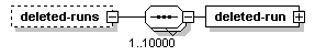 | source | <xs:element name="deleted-runs" minOccurs="0"> <xs:complexType> <xs:sequence maxOccurs="10000"> <xs:element name="deleted-run" type="SCHRunIden"/> </xs:sequence> </xs:complexType> </xs:element> |