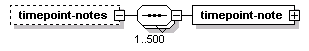 | source | <xs:element name="timepoint-notes" minOccurs="0"> <xs:complexType> <xs:sequence maxOccurs="500"> <xs:element name="timepoint-note" type="SCHNoteIden"/> </xs:sequence> </xs:complexType> </xs:element> |