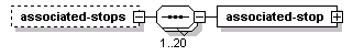 | source | <xs:element name="associated-stops" minOccurs="0"> <xs:complexType> <xs:sequence maxOccurs="20"> <xs:element name="associated-stop" type="CPTStoppointIden"/> </xs:sequence> </xs:complexType> </xs:element> |