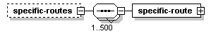 | source | <xs:element name="specific-routes" minOccurs="0"> <xs:complexType> <xs:sequence maxOccurs="500"> <xs:element name="specific-route" type="SCHRouteIden"/> </xs:sequence> </xs:complexType> </xs:element> |
