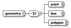 | source | <xs:element name="geometry"> <xs:complexType> <xs:choice> <xs:element name="point" type="SPPoint"/> <xs:element name="line"> <xs:complexType> <xs:sequence maxOccurs="10000"> <xs:element name="line-item" type="SPPoint"/> </xs:sequence> </xs:complexType> </xs:element> <xs:element name="polygon" type="SPPolygon"/> </xs:choice> </xs:complexType> </xs:element> |