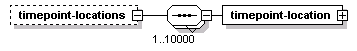 | source | <xs:element name="timepoint-locations" minOccurs="0"> <xs:complexType> <xs:sequence maxOccurs="10000"> <xs:element name="timepoint-location" type="SPTimepointGeoLoc"/> </xs:sequence> </xs:complexType> </xs:element> |