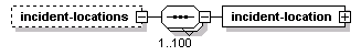| source | <xs:element name="incident-locations" minOccurs="0"> <xs:complexType> <xs:sequence maxOccurs="100"> <xs:element name="incident-location" type="SPIncidentLocation"/> </xs:sequence> </xs:complexType> </xs:element> |