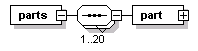 | source | <xs:element name="parts"> <xs:complexType> <xs:sequence maxOccurs="20"> <xs:element name="part" type="SPSymbolPart"/> </xs:sequence> </xs:complexType> </xs:element> |