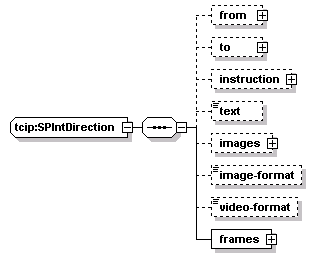 | source | <xs:complexType name="SPIntDirection"> <xs:sequence> <xs:element name="from" type="SPInteriorLocation" minOccurs="0"/> <xs:element name="to" type="SPInteriorLocation" minOccurs="0"/> <xs:element name="instruction" type="atis:ManeuverInstruction" minOccurs="0"/> <xs:element name="text" type="CPT-Footnote" minOccurs="0"/> <xs:element name="images" minOccurs="0"> <xs:complexType> <xs:sequence maxOccurs="10"> <xs:element name="image" type="PI-BinaryImageData"/> </xs:sequence> </xs:complexType> </xs:element> <xs:element name="image-format" type="PI-GraphicFormat" minOccurs="0"/> <xs:element name="video-format" type="PI-GraphicFormat" minOccurs="0"/> <xs:element name="frames"> <xs:complexType> <xs:sequence maxOccurs="5"> <xs:element name="frame" type="PI-BinaryVideoData"/> </xs:sequence> </xs:complexType> </xs:element> </xs:sequence> </xs:complexType> |