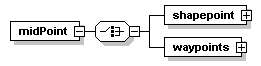 | source | <xs:element name="midPoint"> <xs:complexType> <xs:choice> <xs:element name="shapepoint" type="ShapePoint"/> <xs:element name="waypoints" type="lrms:PointLocation"/> </xs:choice> </xs:complexType> </xs:element> |