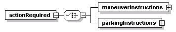 | source | <xs:element name="actionRequired"> <xs:complexType> <xs:choice> <xs:element name="maneuverInstructions" type="ManeuverInstruction"/> <xs:element name="parkingInstructions" type="ParkingInstructions"/> </xs:choice> </xs:complexType> </xs:element> |
