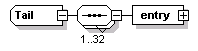 | source | <xs:complexType name="Tail"> <xs:sequence maxOccurs="32"> <xs:element name="entry"> <xs:complexType> <xs:sequence> <xs:element name="tag"> <xs:simpleType> <xs:restriction base="xs:string"> <xs:minLength value="1"/> <xs:maxLength value="20"/> </xs:restriction> </xs:simpleType> </xs:element> <xs:element name="value"> <xs:simpleType> <xs:restriction base="xs:string"> <xs:minLength value="1"/> <xs:maxLength value="200"/> </xs:restriction> </xs:simpleType> </xs:element> </xs:sequence> </xs:complexType> </xs:element> <!-- sets of addtional named data values --> </xs:sequence> </xs:complexType> |