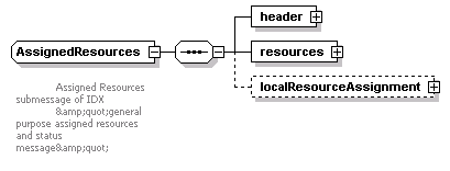 source | <xs:complexType name="AssignedResources"> <xs:annotation> <xs:documentation> Assigned Resources submessage of IDX &quot;general purpose assigned resources and status message&quot; </xs:documentation> </xs:annotation> <xs:sequence> <xs:element name="header" type="Header"/> <!-- if an inner element is not present then the header content of the message which carries this DF shall be applied to the context of this message. The header has the data creator, time stamps, location, and what to do when the message becomes old (how to get a fresh one) and the reference ID of this message or submessage --> <xs:element name="resources"> <xs:complexType> <xs:sequence maxOccurs="32"> <xs:element name="resource"> <xs:complexType> <xs:sequence> <xs:element name="device" type="ResourceAssignment"/> <xs:element name="localResourceAssignment2" type="local:ResourceAssignment2" minOccurs="0"/> </xs:sequence> </xs:complexType> </xs:element> </xs:sequence> </xs:complexType> </xs:element> <xs:element name="localResourceAssignment" type="local:ResourceAssignment" minOccurs="0"/> </xs:sequence> </xs:complexType> |