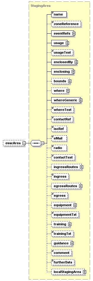 source | <xs:element name="evacArea" type="StagingArea" minOccurs="0"/> |