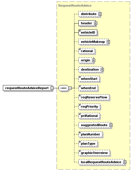 source | <xs:element name="routeAdviceReports"> <xs:complexType> <xs:sequence minOccurs="0" maxOccurs="64"> <xs:element name="routeAdviceReport" type="RouteAdvice"/> <!-- From 1512.One (and also a msg) --> </xs:sequence> </xs:complexType> </xs:element> |