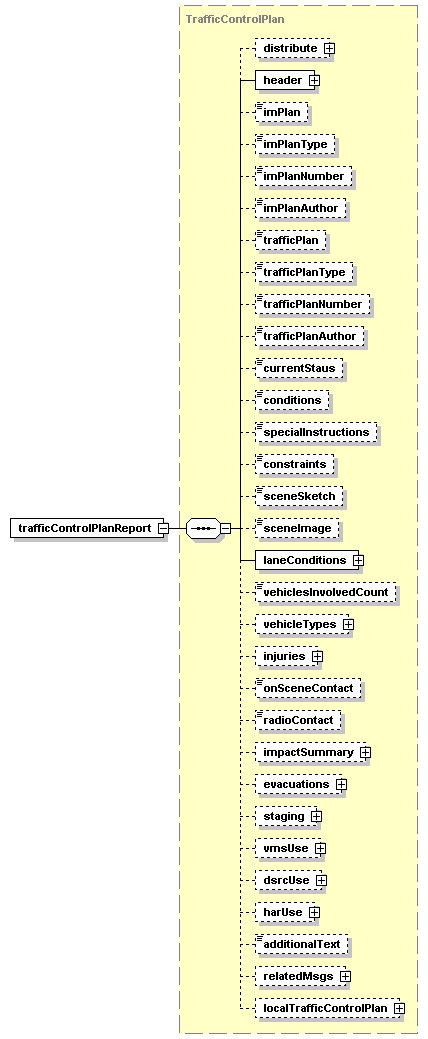 children | distribute header imPlan imPlanType imPlanNumber imPlanAuthor trafficPlan trafficPlanType trafficPlanNumber trafficPlanAuthor currentStaus conditions specialInstructions constraints sceneSketch sceneImage laneConditions vehiclesInvolvedCount vehicleTypes injuries onSceneContact radioContact impactSummary evacuations staging vmsUse dsrcUse harUse additionalText relatedMsgs localTrafficControlPlan | ||||