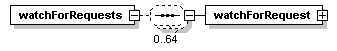 source | <xs:element name="watchForRequests"> <xs:complexType> <xs:sequence minOccurs="0" maxOccurs="64"> <xs:element name="watchForRequest" type="WatchFor"/> <!-- From 1512.Two (and also a msg) --> </xs:sequence> </xs:complexType> </xs:element> |