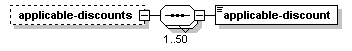 source | <xs:element name="applicable-discounts" minOccurs="0"> <xs:complexType> <xs:sequence maxOccurs="50"> <xs:element name="applicable-discount" type="FC-DiscountType"/> </xs:sequence> </xs:complexType> </xs:element> |