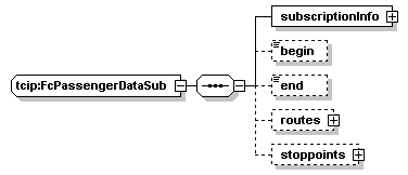 source | <xs:complexType name="FcPassengerDataSub"> <xs:sequence> <xs:element name="subscriptionInfo" type="CPTSubscriptionHeader"/> <xs:element name="begin" type="CPT-DateTime" minOccurs="0"/> <xs:element name="end" type="CPT-DateTime" minOccurs="0"/> <xs:element name="routes" minOccurs="0"> <xs:complexType> <xs:sequence maxOccurs="1000"> <xs:element name="route" type="SCHRouteIden"/> </xs:sequence> </xs:complexType> </xs:element> <xs:element name="stoppoints" minOccurs="0"> <xs:complexType> <xs:sequence maxOccurs="25000"> <xs:element name="stoppoint" type="CPTStoppointIden"/> </xs:sequence> </xs:complexType> </xs:element> </xs:sequence> </xs:complexType> |