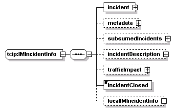 source | <xs:complexType name="IMIncidentInfo"> <xs:sequence> <xs:element name="incident" type="IMIncidentIden"/> <xs:element name="metadata" type="CPTRowMetaData" minOccurs="0"/> <xs:element name="subsumedIncidents" minOccurs="0"> <xs:complexType> <xs:sequence maxOccurs="100"> <xs:element name="subsumedIncident" type="IMIncidentIden"/> </xs:sequence> </xs:complexType> </xs:element> <xs:element name="incidentDescription" type="IMIncident" minOccurs="0"/> <xs:element name="trafficImpact" type="IMTrafficImpact" minOccurs="0"/> <xs:element name="incidentClosed" type="CPT-Boolean"/> <xs:element name="localIMIncidentInfo" type="local:IMIncidentInfo" minOccurs="0"/> </xs:sequence> </xs:complexType> |