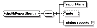 source | <xs:complexType name="ObReportHealth"> <xs:sequence> <xs:element name="report-time" type="CPT-DateTime"/> <xs:element name="note" type="CPT-Footnote" minOccurs="0"/> <xs:element name="status-reports"> <xs:complexType> <xs:sequence maxOccurs="5"> <xs:element name="status-report" type="OBHealthStatusRecord"/> </xs:sequence> </xs:complexType> </xs:element> </xs:sequence> </xs:complexType> |