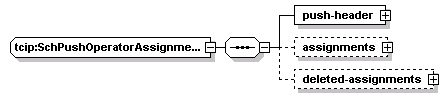 source | <xs:complexType name="SchPushOperatorAssignments"> <xs:sequence> <xs:element name="push-header" type="CPTPushHeader"/> <xs:element name="assignments" minOccurs="0"> <xs:complexType> <xs:sequence maxOccurs="100000"> <xs:element name="assignment" type="SCHOperatorAssignment"/> </xs:sequence> </xs:complexType> </xs:element> <xs:element name="deleted-assignments" minOccurs="0"> <xs:complexType> <xs:sequence maxOccurs="100000"> <xs:element name="deleted-assignment" type="SCHRunIden"/> </xs:sequence> </xs:complexType> </xs:element> </xs:sequence> </xs:complexType> |