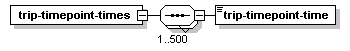 source | <xs:element name="trip-timepoint-times"> <xs:complexType> <xs:sequence maxOccurs="500"> <xs:element name="trip-timepoint-time" type="SCH-Time"/> </xs:sequence> </xs:complexType> </xs:element> |