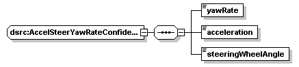 source | <xs:complexType name="AccelSteerYawRateConfidence"> <xs:sequence> <xs:element name="yawRate" type="YawRateConfidence"/> <!-- 3 bits --> <xs:element name="acceleration" type="AccelerationConfidence"/> <!-- 3 bits --> <xs:element name="steeringWheelAngle" type="SteeringWheelAngleConfidence"/> <!-- 2 bits --> </xs:sequence> </xs:complexType> |