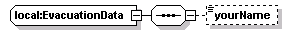 source | <xs:complexType name="EvacuationData"> <xs:sequence> <xs:element name="yourName" minOccurs="0"> <xs:simpleType> <xs:restriction base="xs:string"> <xs:length value="10"/> </xs:restriction> </xs:simpleType> </xs:element> <!-- Insert instance name and Type of each elements here, and any restrictions that are needed. --> </xs:sequence> </xs:complexType> |
