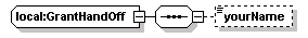 source | <xs:complexType name="GrantHandOff"> <xs:sequence> <xs:element name="yourName" minOccurs="0"> <xs:simpleType> <xs:restriction base="xs:string"> <xs:length value="10"/> </xs:restriction> </xs:simpleType> </xs:element> <!-- Insert instance name and Type of each elements here, and any restrictions that are needed. --> </xs:sequence> </xs:complexType> |