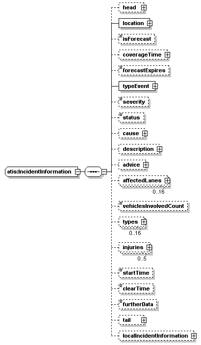children | head location isForecast coverageTime forecastExpires typeEvent severity status cause description advice affectedLanes vehiclesInvolvedCount types injuries startTime clearTime furtherData tail localIncidentInformation | ||