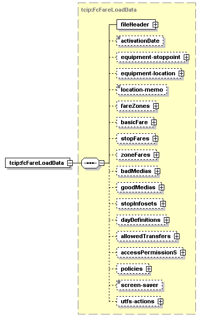 children | fileHeader activationDate equipment-stoppoint equipment-location location-memo fareZones basicFare stopFares zoneFares badMedias goodMedias stopInfosets dayDefinitions allowedTransfers accessPermissionS policies screen-saver utfs-actions | ||